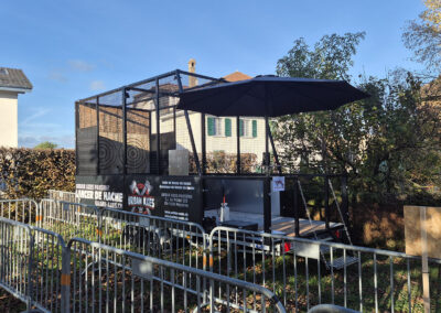 Notre remorque est équipée de deux pistes de lancer de hache, prêtes à l’emploi. Elle s’installe rapidement et permet d’accueillir un flux continu de participants, dans un cadre sécurisé et structuré.